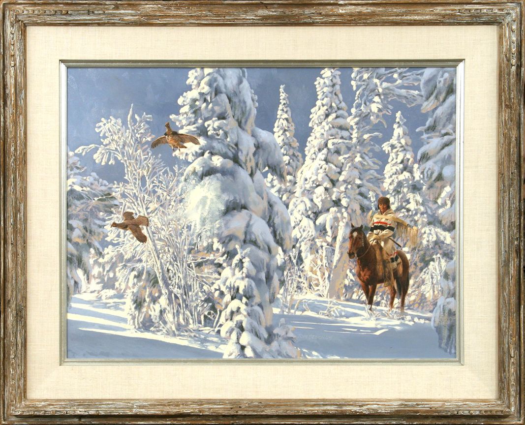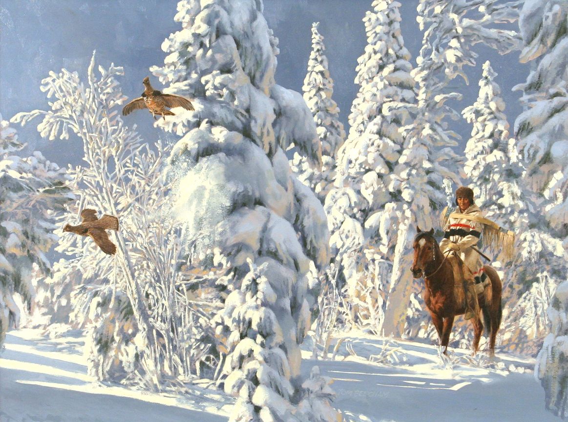 Tom Beecham (1926 - 2000). Broken Silence. 21" x 28" oil on board. Signed lower left: T BEECHAM. Condition reports can be viewed at www.marchinmontana.com/docs/2013CR.pdf