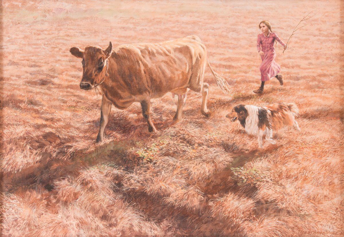 Tom Beecham (1926-2000). And Don’t Run Ol' Bessie. 14" x 20" oil on canvas. Signed and dated '86 lower right, SAHA.