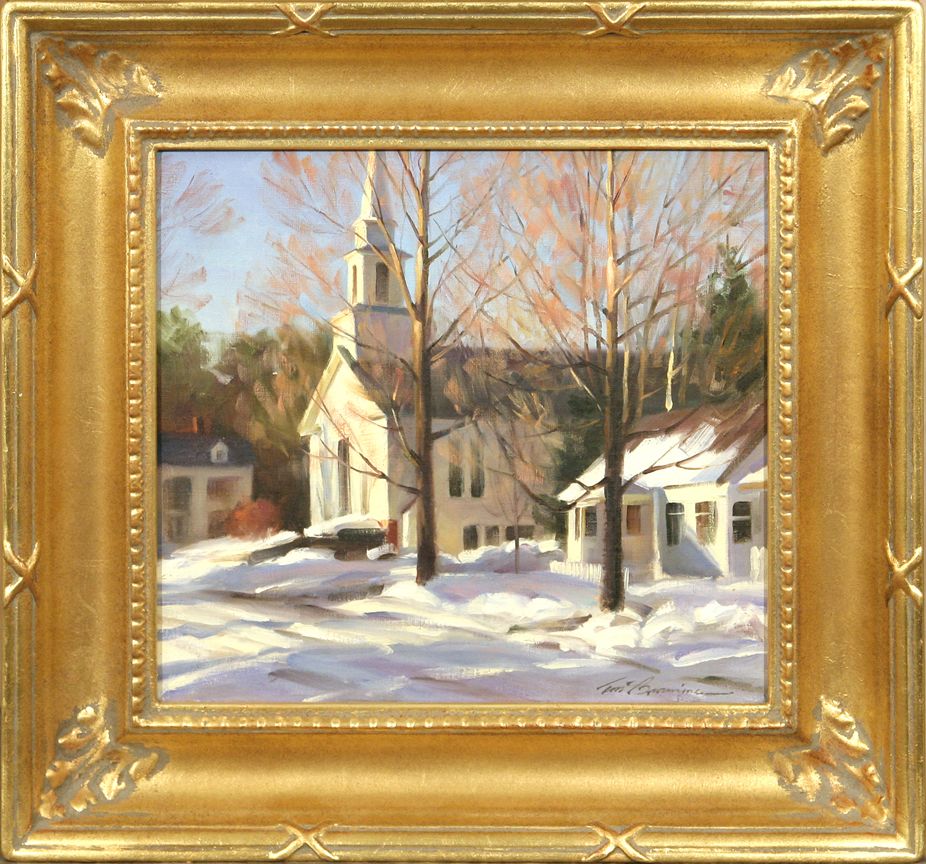 Tom Browning (1949 - ). Grafton In Winter. 12" x 13 oil on board. Signed lower right: Tom Browning. Condition reports can be viewed at www.marchinmontana.com/docs/2013CR.pdf