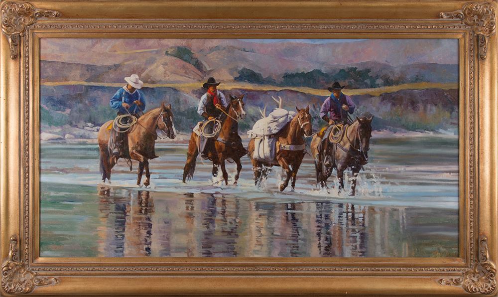 Tom Dorr (1950 - ). A Successful Trip. 23" x 44" oil on board