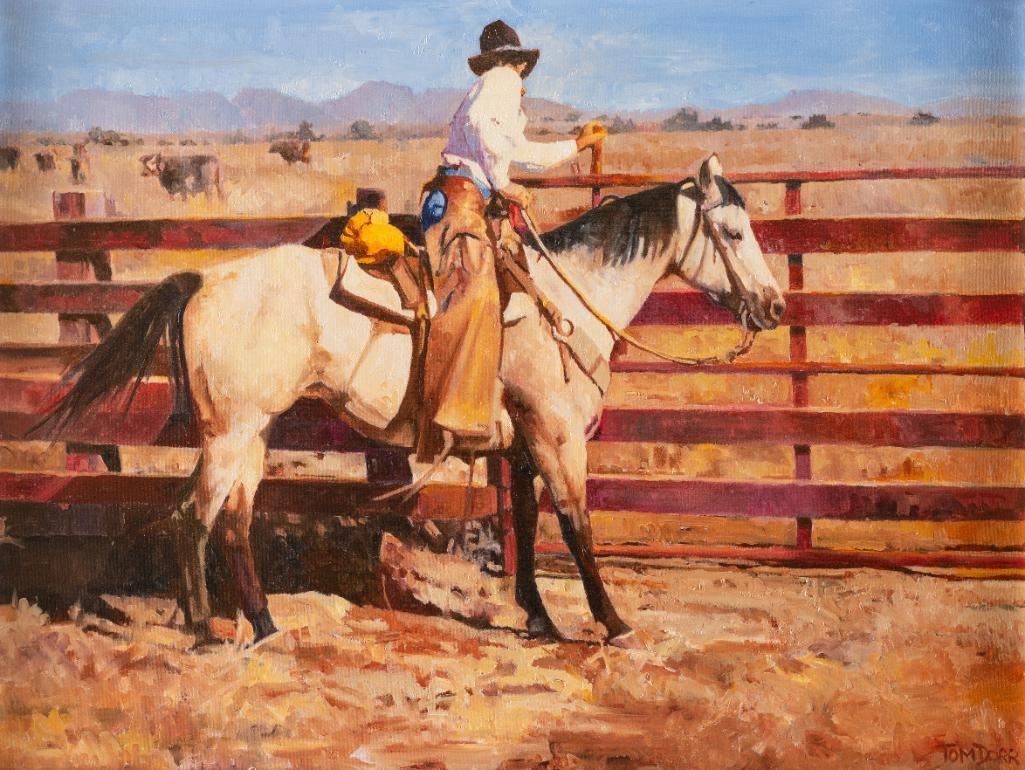 Tom Dorr (1950 - ) The Last Chore 20" x 28"oil on canvas Signed lower right $2,000-3,000 Provenance: Private Collection, Montana.
