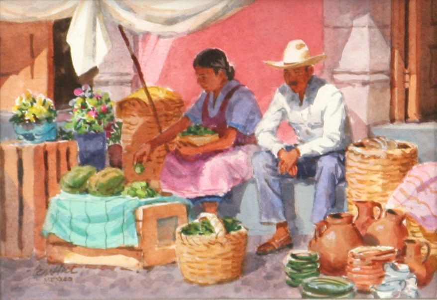 Tom Hill (1925 - ). Patience. 6.25" x 9.25" watercolor. Signed lower left: TOM HILL, MEXICO. Condition reports can be viewed at www.marchinmontana.com/docs/2013CR.pdf