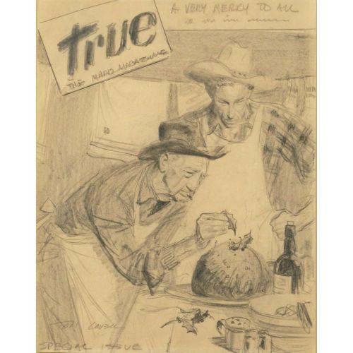 Tom Lovell (1909-1997), CAA, Pencil Illustration for True Magazine. Cover for Special Issue. 10 ¾” x 8 ½”, signed LL