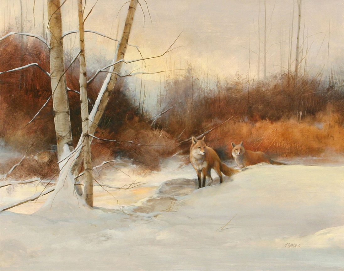 Tom Sander (1938 - ). Red Fox. 16" x 20" oil on board. Signed lower right: T. SANDER. Condition reports can be viewed at www.marchinmontana.com/docs/2013CR.pdf