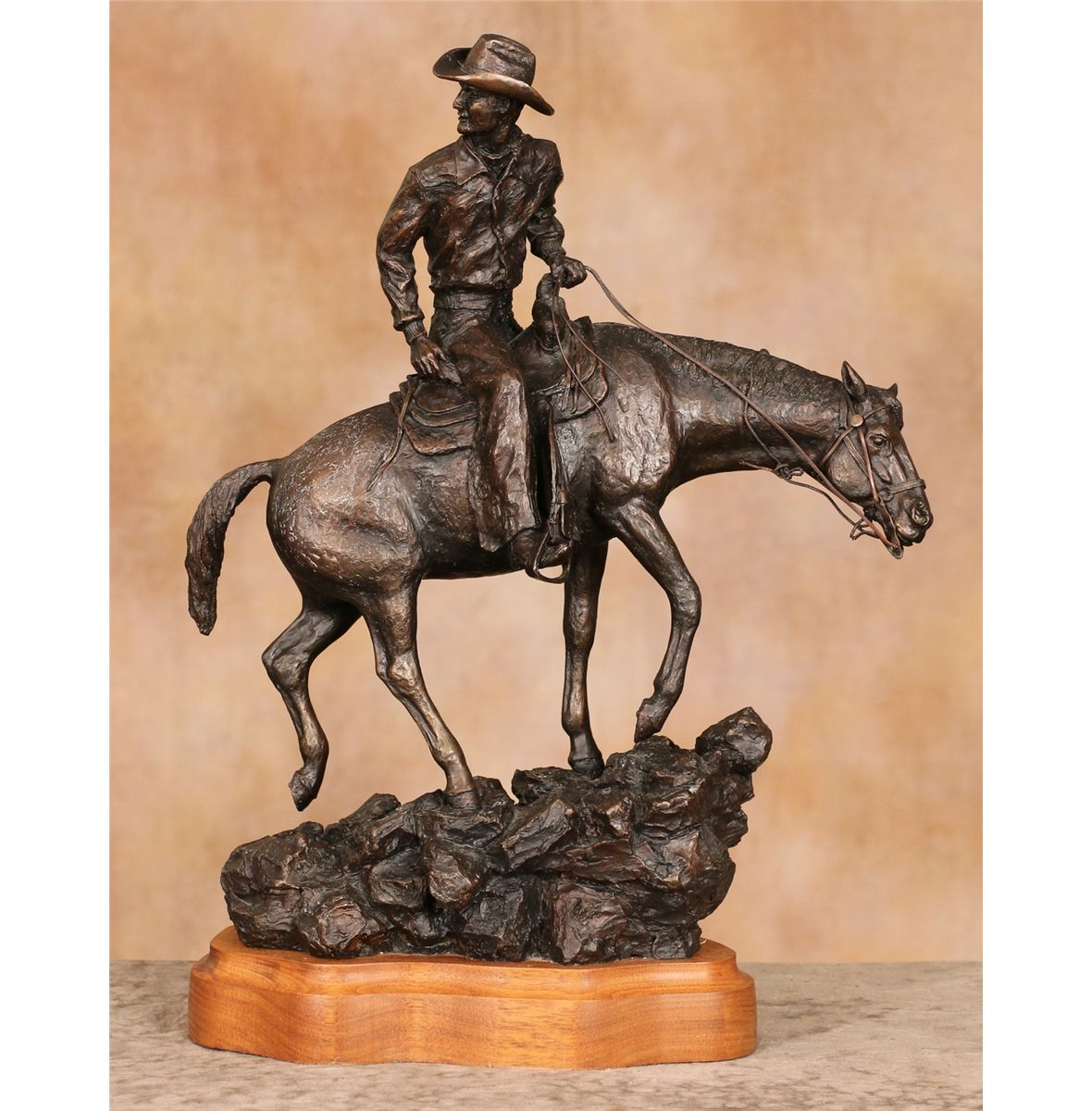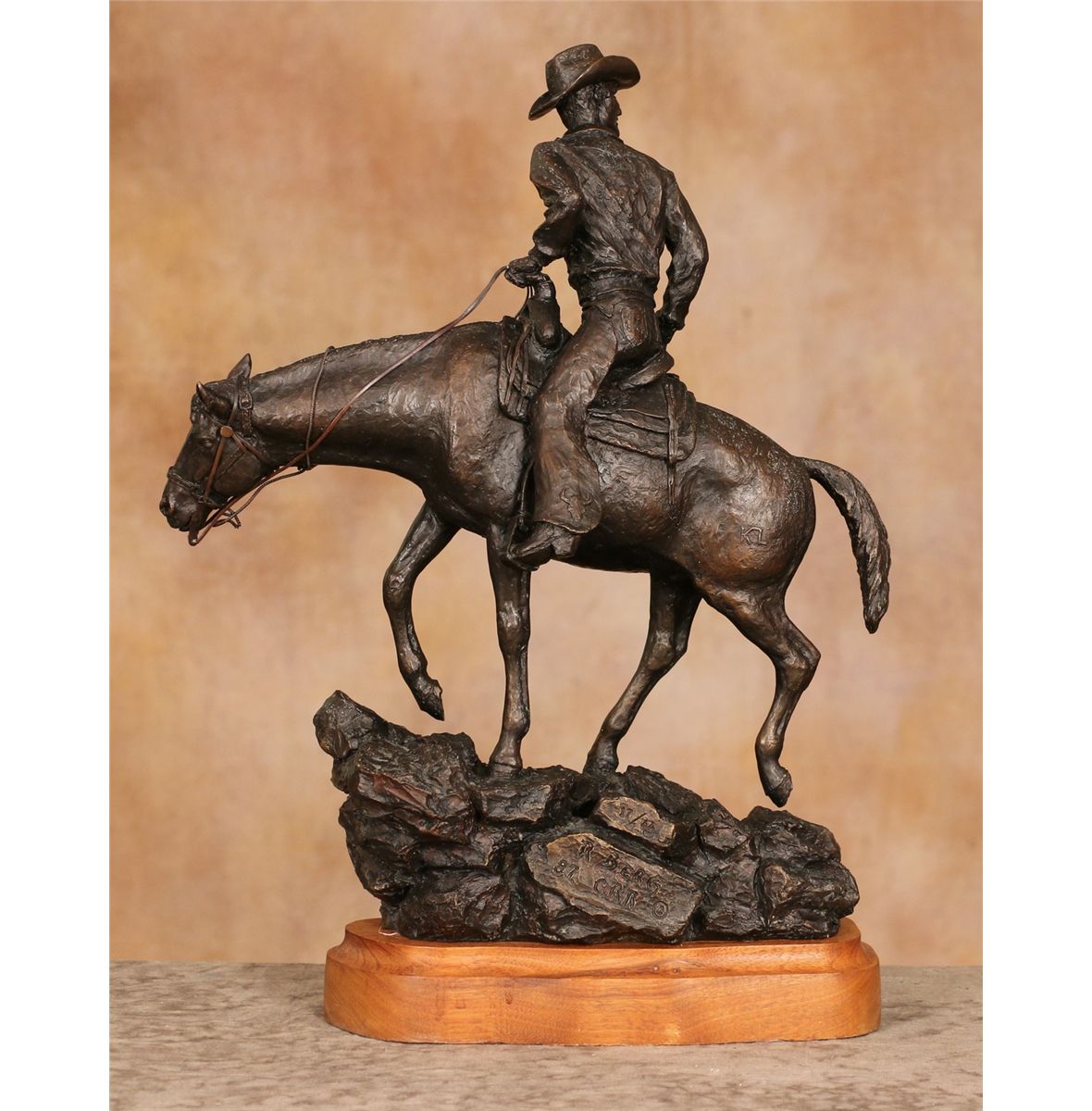 Ralph 'Tuffy' Berg, Jr. (1940 - 1991). Charlie Russell Rider. 16" x 13" x 5" bronze. Inscribed: 17/44 R BERG 87 CRR ©.