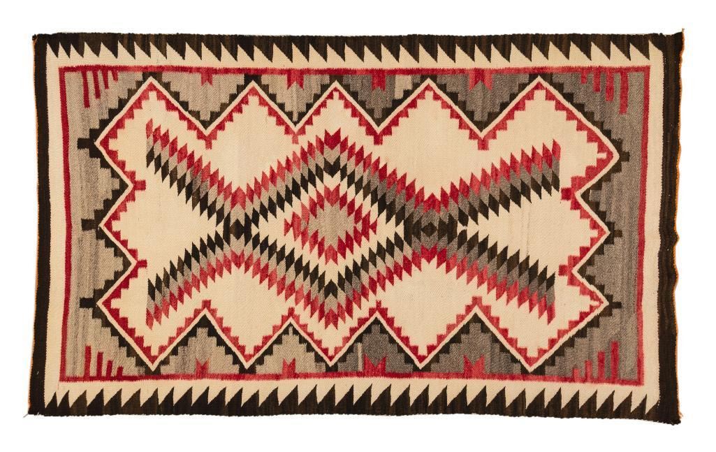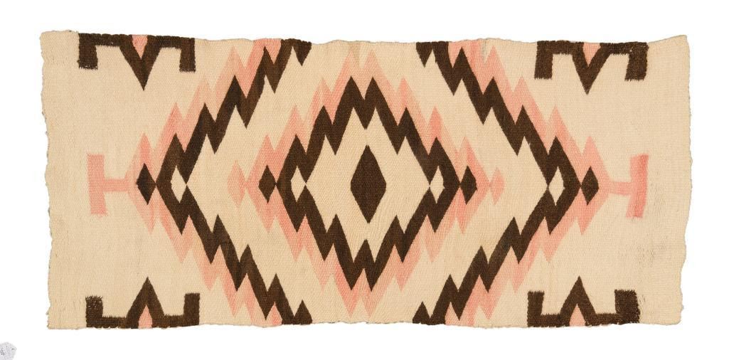Two Navajo Rugs 1) Navajo Rug 2'1" x 4'7". Early Transitional weaving. Circa 1880. 2) Navajo Rug 3' x 5'. General area weaving with serrated and stepped designs. Circa 1935. $900-1,400