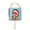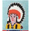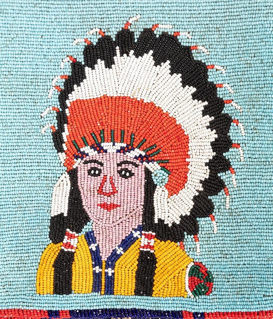 1) 16" x 10.5" overall. Pictorial beadwork depicting Native Chief in red, orange, yellow, blue, red and white beads.
