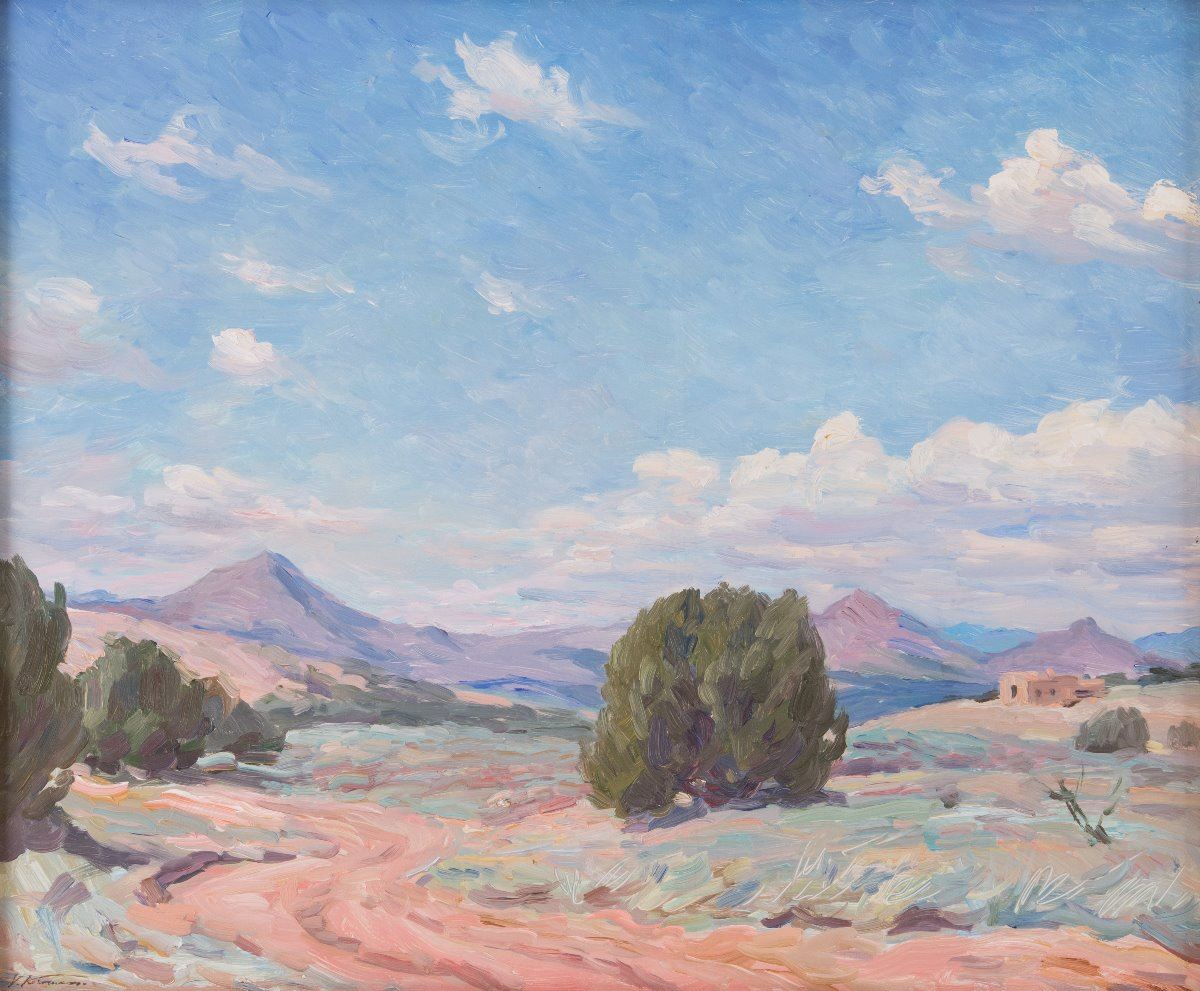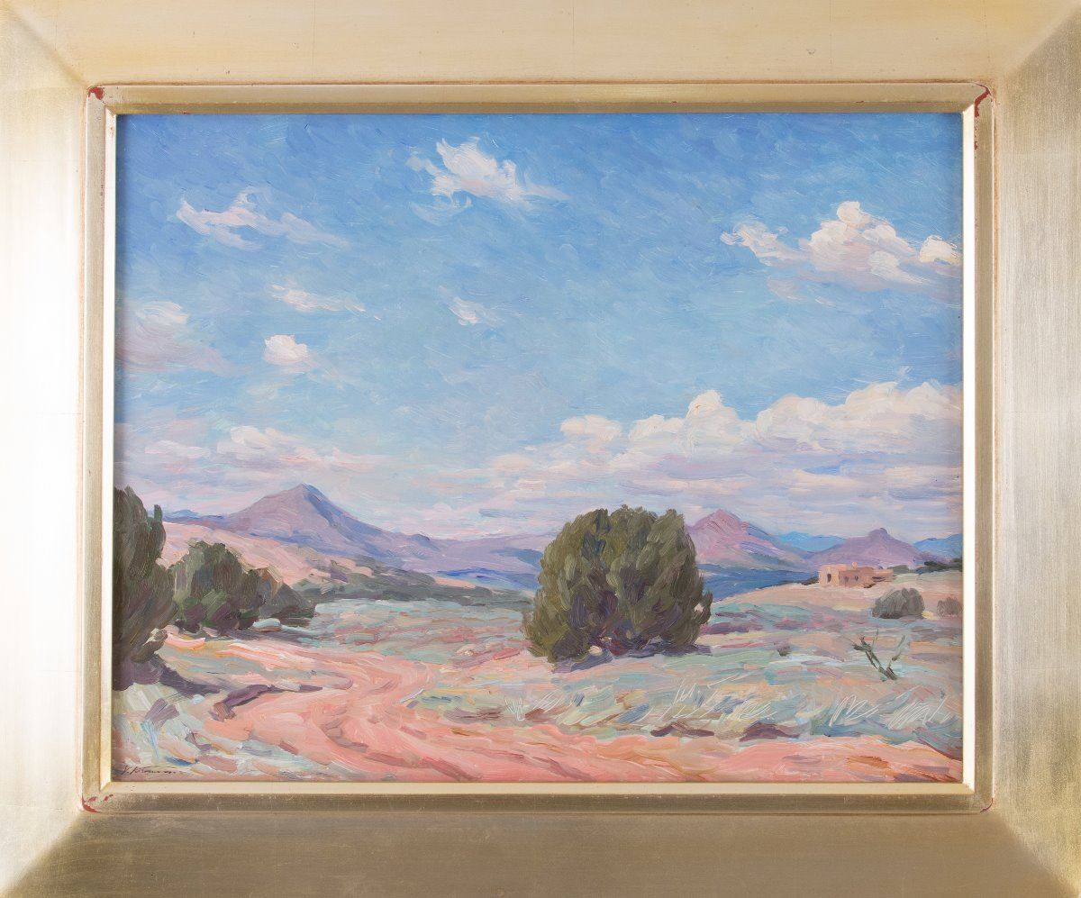 Valery Kosorukov (20th century). Sunny Summer Day Near Cerrillos. 16" x 20" oil on board. Signed lower left. Verso: Signed and dated 1996. Zaplin Lampert Gallery (Santa Fe, NM) sticker.