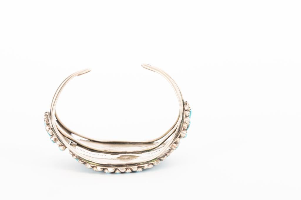 Medium sized, Traditional floral design bracelet featuring Kingman Turquoise.