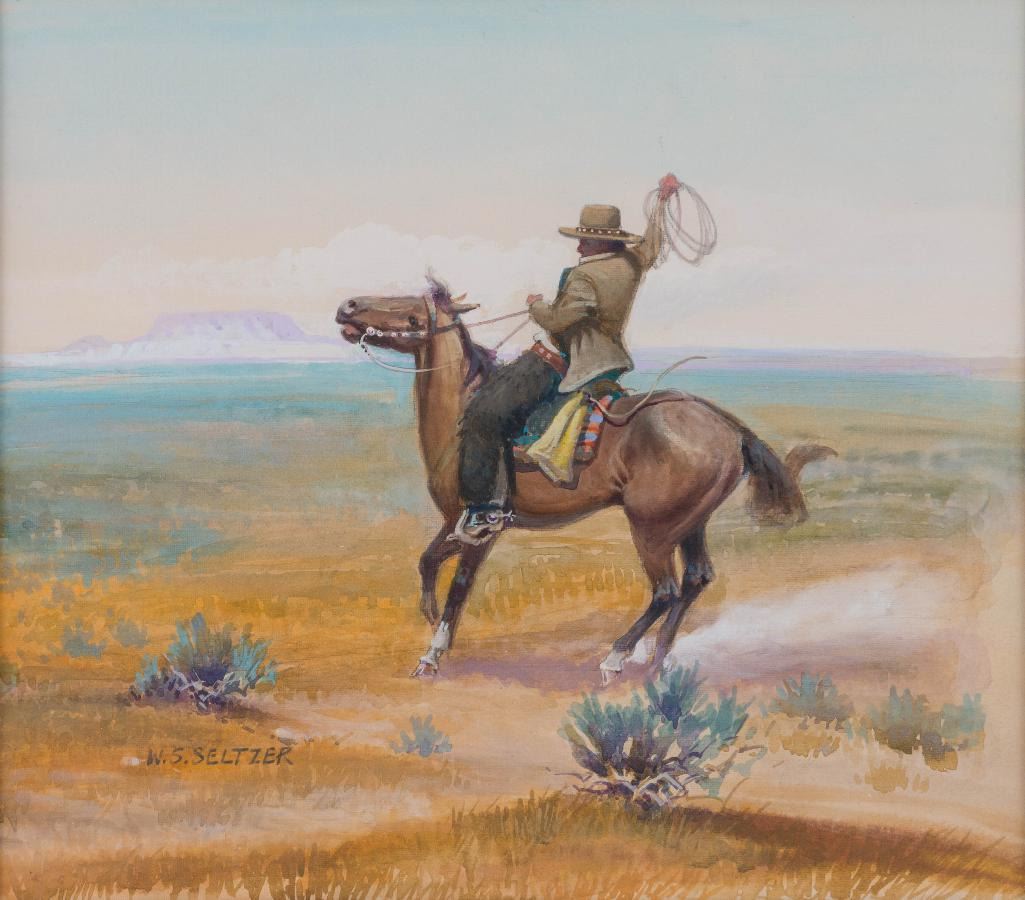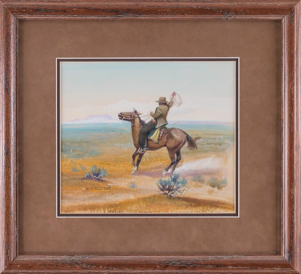 W. Steve Seltzer (1955 - ) Breakin' 'Em In 8.25" x 9 ?" mixed media Signed lower left Verso: Titled, and dated 2/12/76 $750-1,000