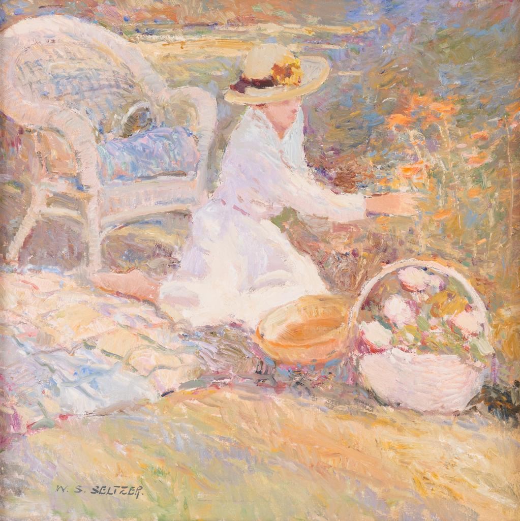 W. Steve Seltzer (1955 - ) Carol's Garden 12" x 12" oil on board Signed lower left Together with: Ralph Oberg (1950 - ) Timberline Tarn 12" x 16" oil on canvasboard Signed lower right Verso: Titled, signed and dated 2001. Together with: Robert Kuester (1940 - )(OPA) Early Fall in the Gorge 16" x 12" oil on canvasboard Signed lower left, OPA $1,000-1,500