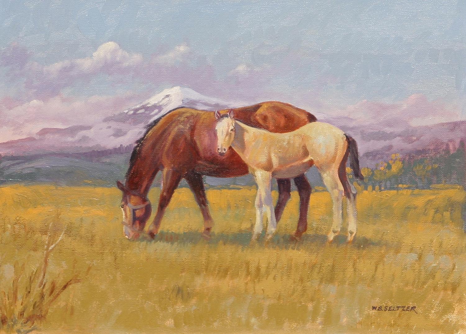 W. Steve Seltzer (b. 1955). Proud Mamma. 14" x 18" oil on canvas. signed lower right. (est $1,000-2,000) Condition Report: Black lights clean