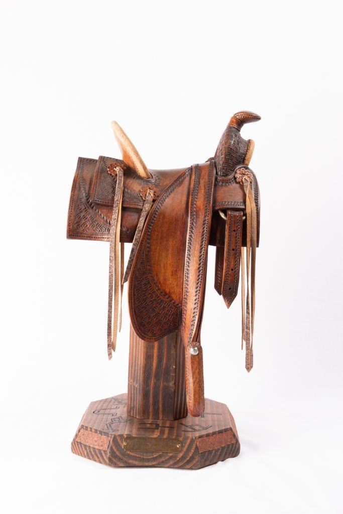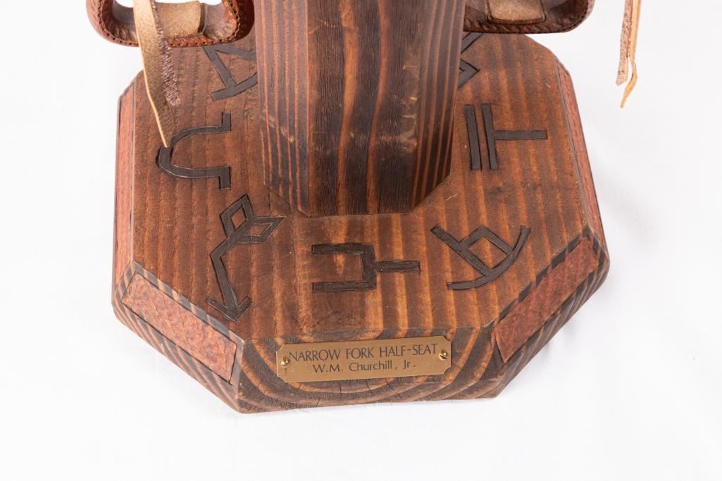 William M. Churchill, Jr. (1936 - ) Narrow Fork-Half Seat 19" x 11" x 8" hand-carved wooden saddle Inscribed: Bill Churchill 2005. $2,000-3,000 Provenance: Private Collection, Montana.