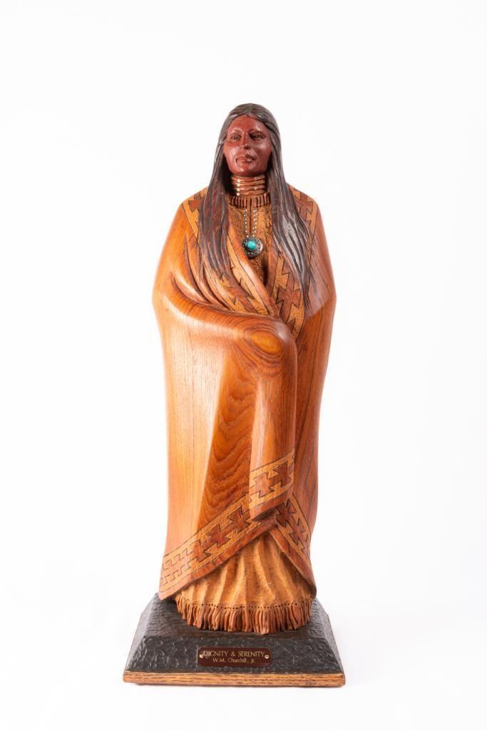 William M. Churchill, Jr. (1936 - ) Dignity and Serenity 22.25" x 7" x 5" teak wood carving Inscribed: Bill Churchill 2013 $2,000-3,000 Provenance: Private Collection, Montana.