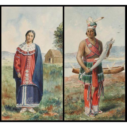 William McKenna (Early 20th century) Two watercolors, 16" x 9", signed and dated 1912 LR. (1) DA-AH-DE-A. (2) GA-HAH-NO. An original letter, dated 1920, providing background information on the two Senecas in the paintings, will accompany the lot. LITERATURE: Lewis H. Morgan, League of the Iroquois (New York, Dodd, Mead and Company, 1904), frontispiece of Volume I and II, illustrated. The book is included with the lot.