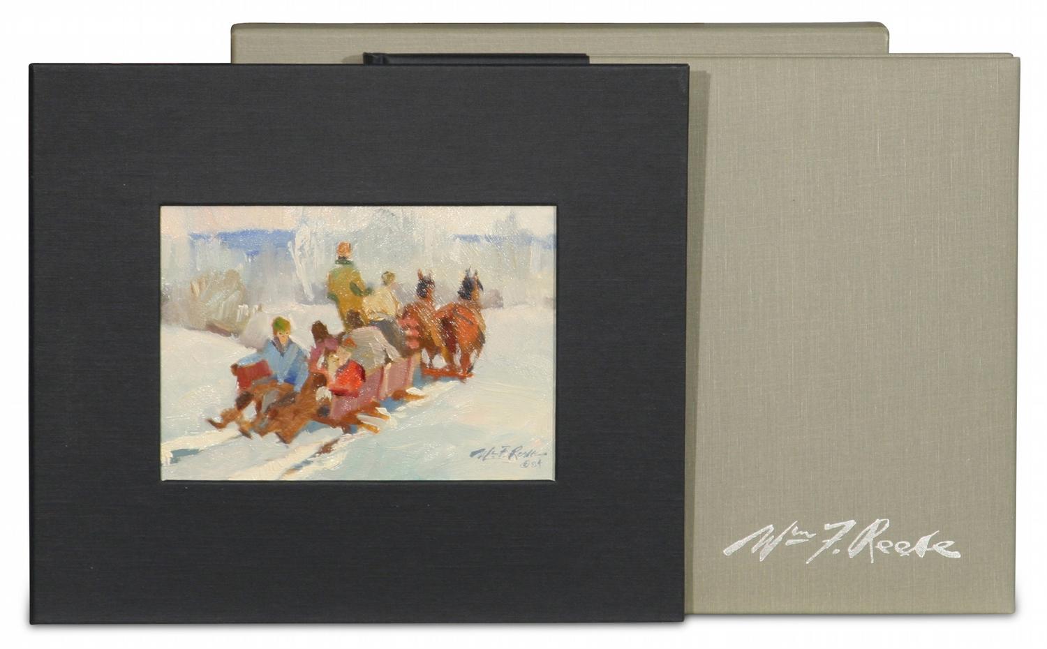 William Reese (1938-2010). Sled Team. 5 ¼" x 6 ¼" oil on canvas. Signed lower right. Together with a book by William Reese & Mary Balcomb. (est $500-700) Condition Report: Excellent condition