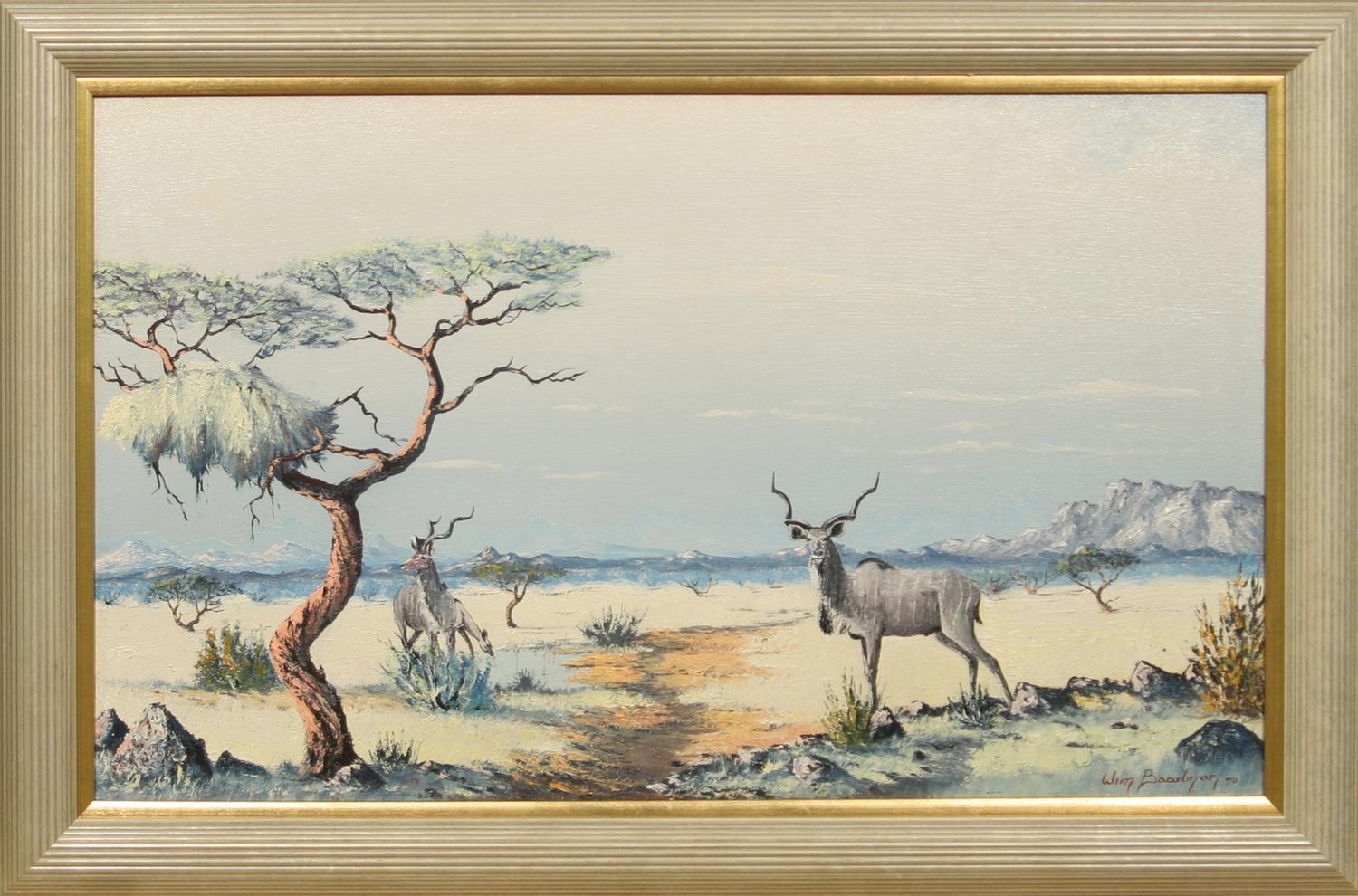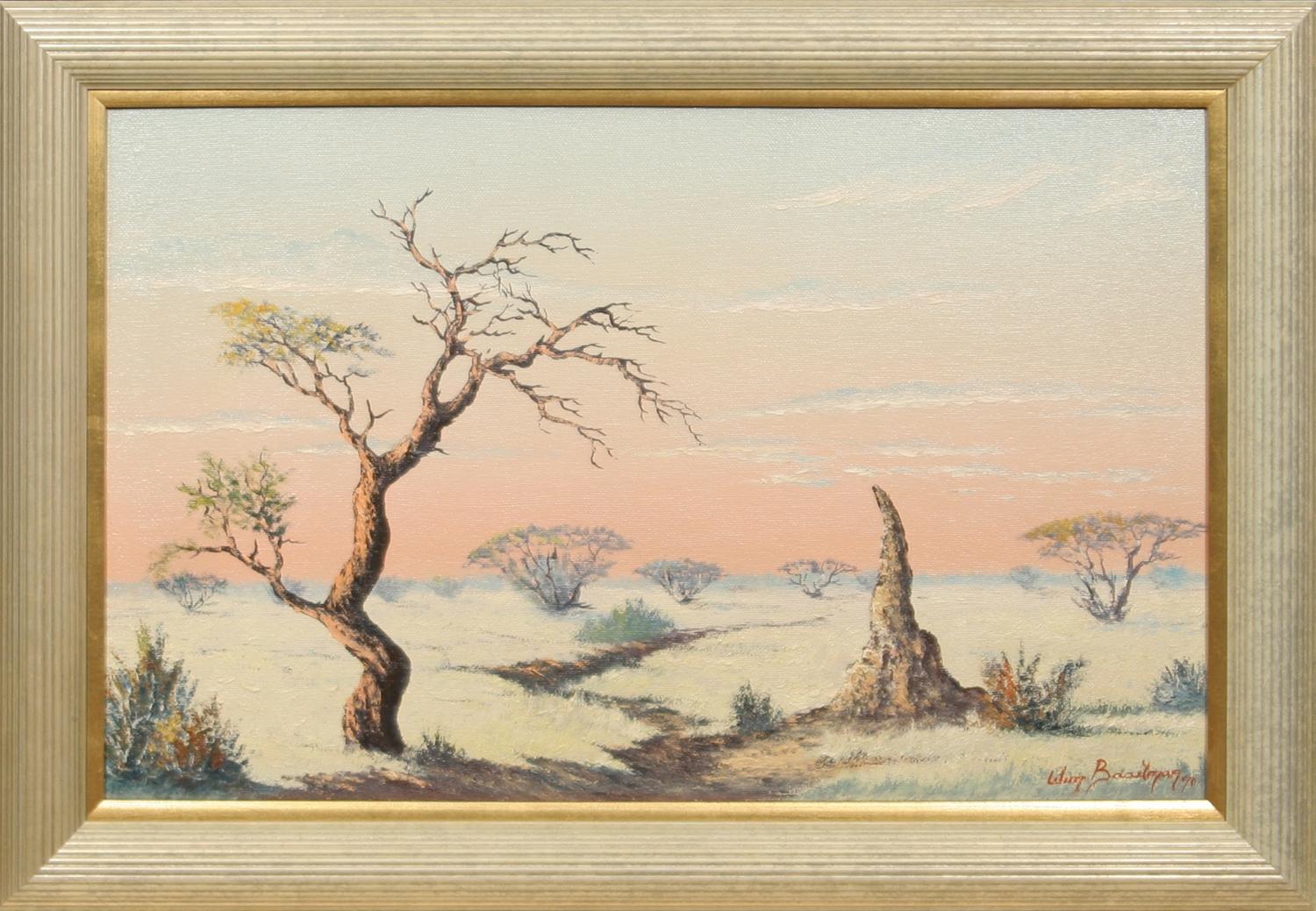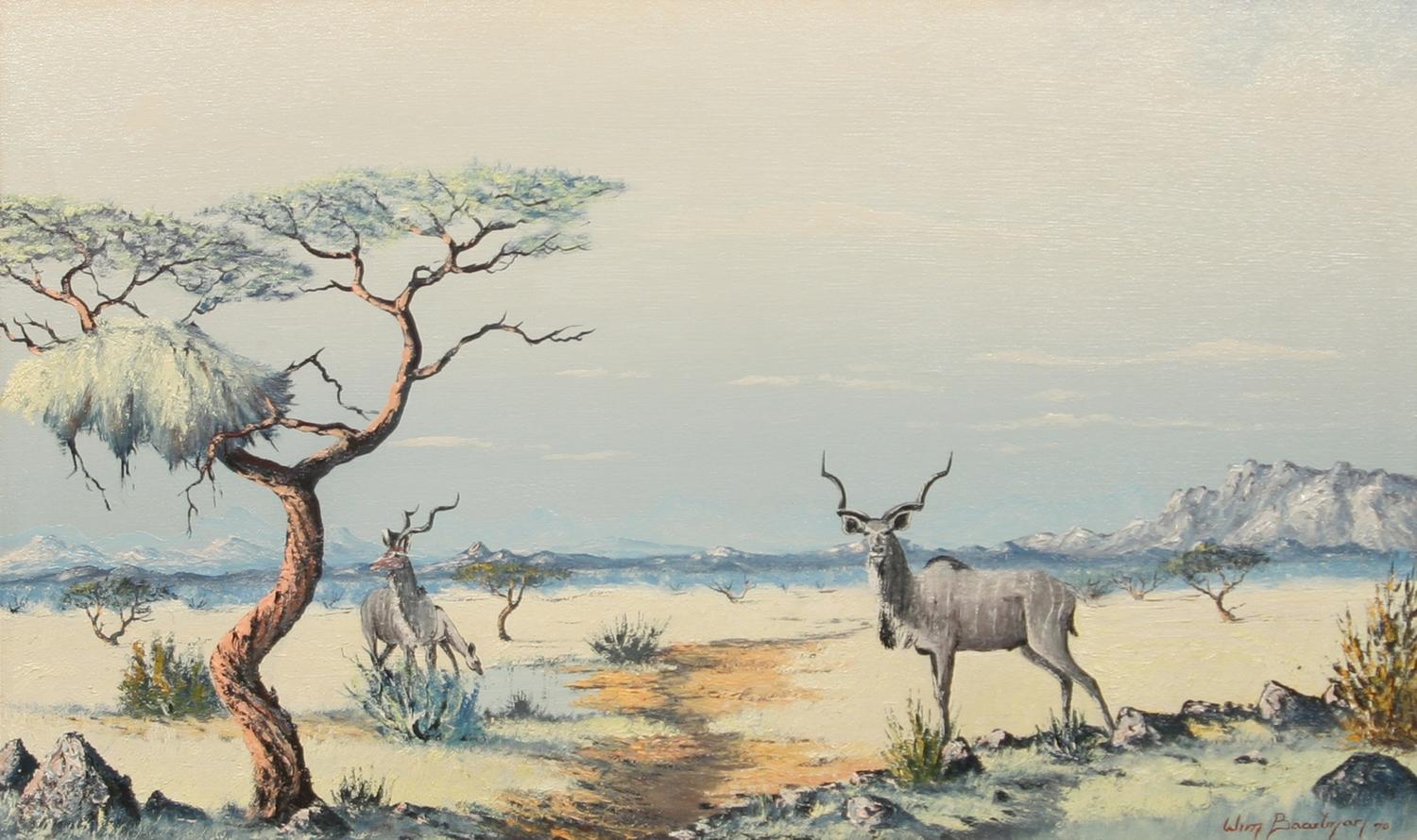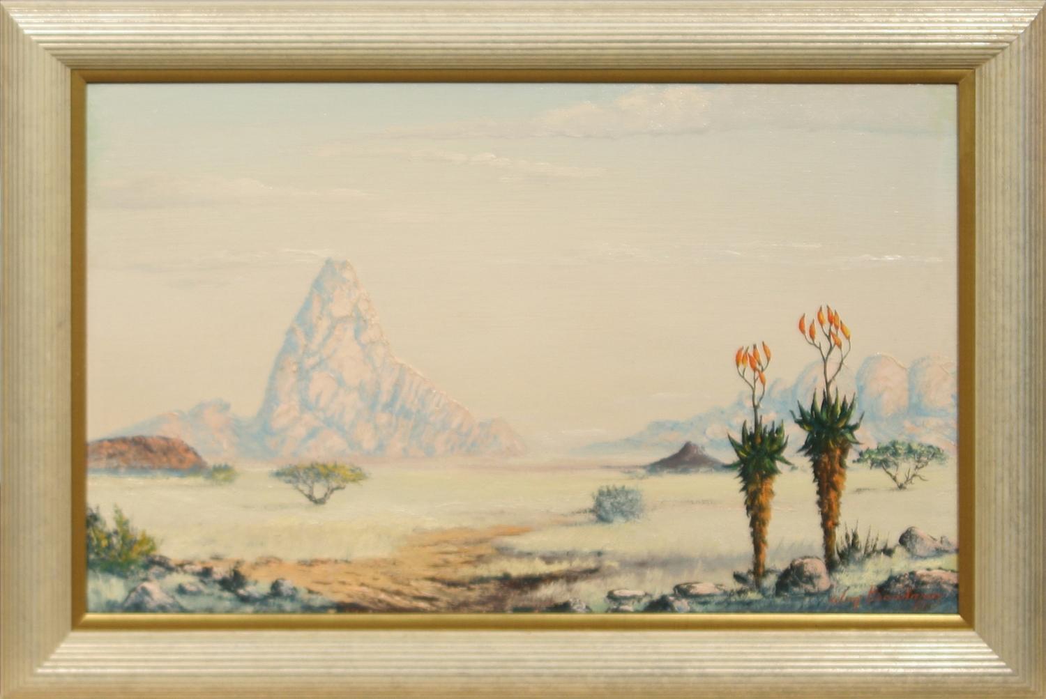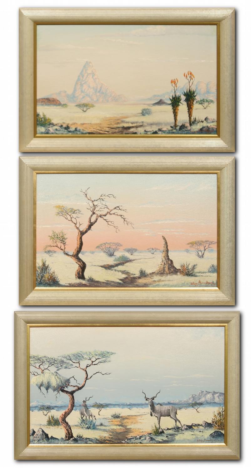 Wim Baartman. 3 Oils on Board. (1) Mountain Peak, 18" x 28 ½". (2) Landscape, 18" x 28 ½". (3) Kudo, 21" x 34 ½". all signed & dated 1970. (est $1,500-2,500) Condition Report: All black light clean