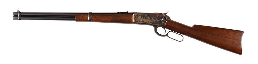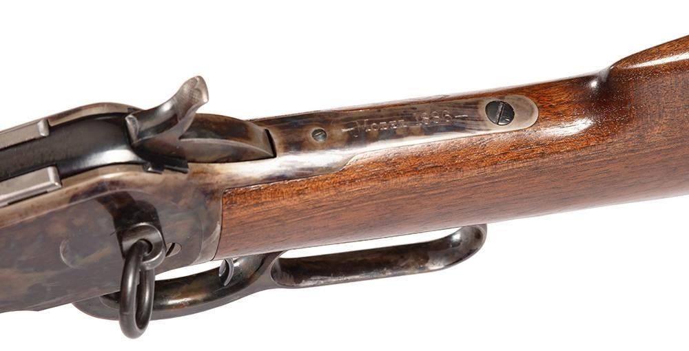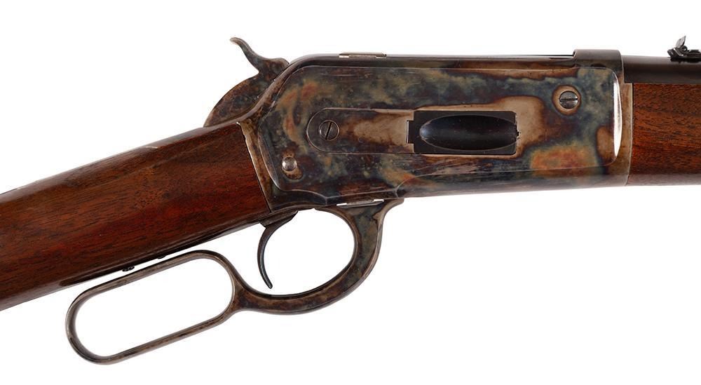 22” barrel. .50 caliber. Serial #83796. Fully restored by Turnbull Restoration. 20 cartridge original Winchester box of 50-110 ammunition included in lot. Only 212 1886 Carbines were made.