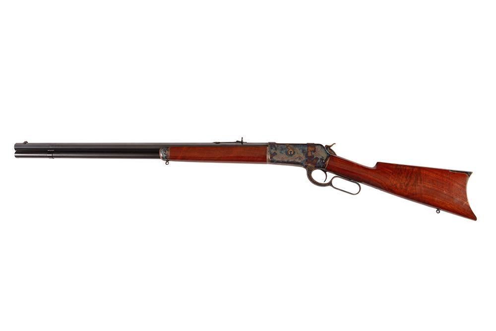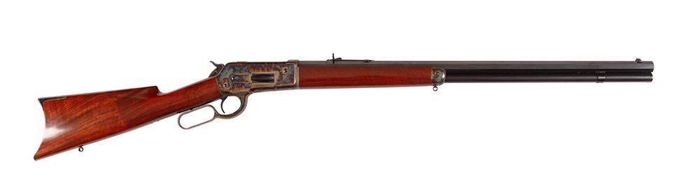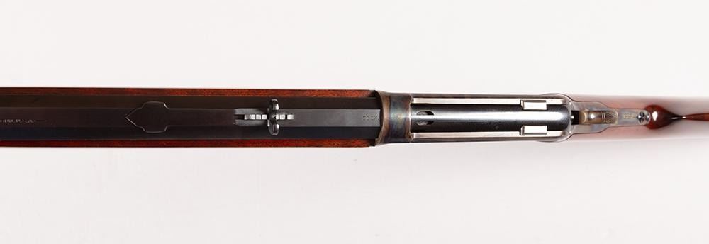 26” octagon barrel. .50 caliber. Serial #42489. Rifle barrel is 2” longer than standard barrels. Fully restored by Turnbull Restoration. 20 cartridge box of 50-110 ammunition included in lot.