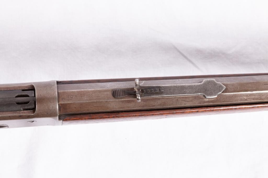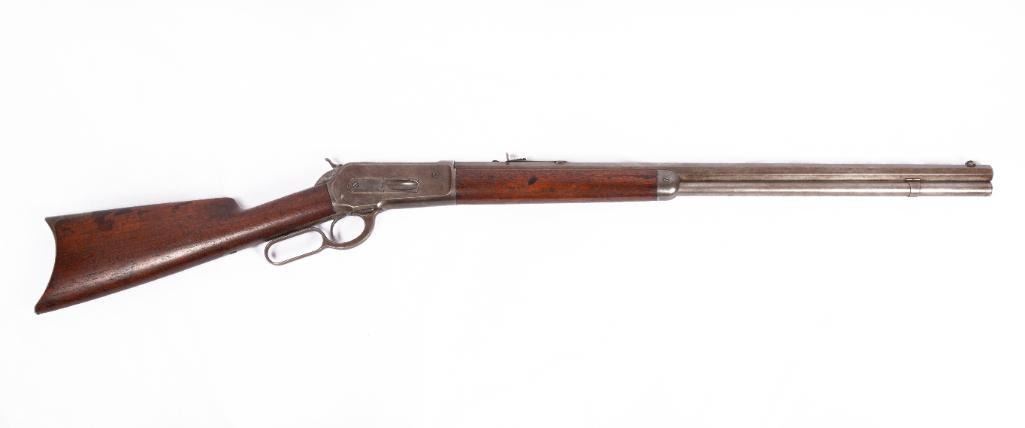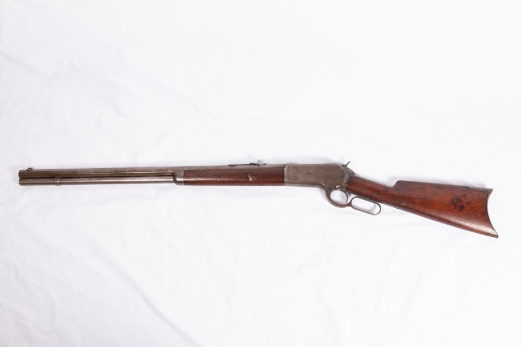 Winchester Model 86 40-82, made 1888. 25.25" barrel. Standard rifle showing honest, early use. Serial #21884. Shows early refinish and wear. $2,000-3,000